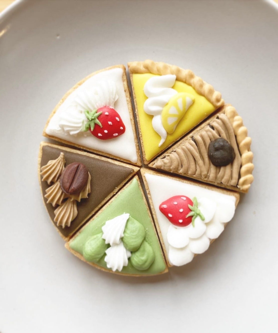 3段になっていて、1番下は素焼きクッキー、2段目は単色アイシング、1番上がケーキデザインとなっています。