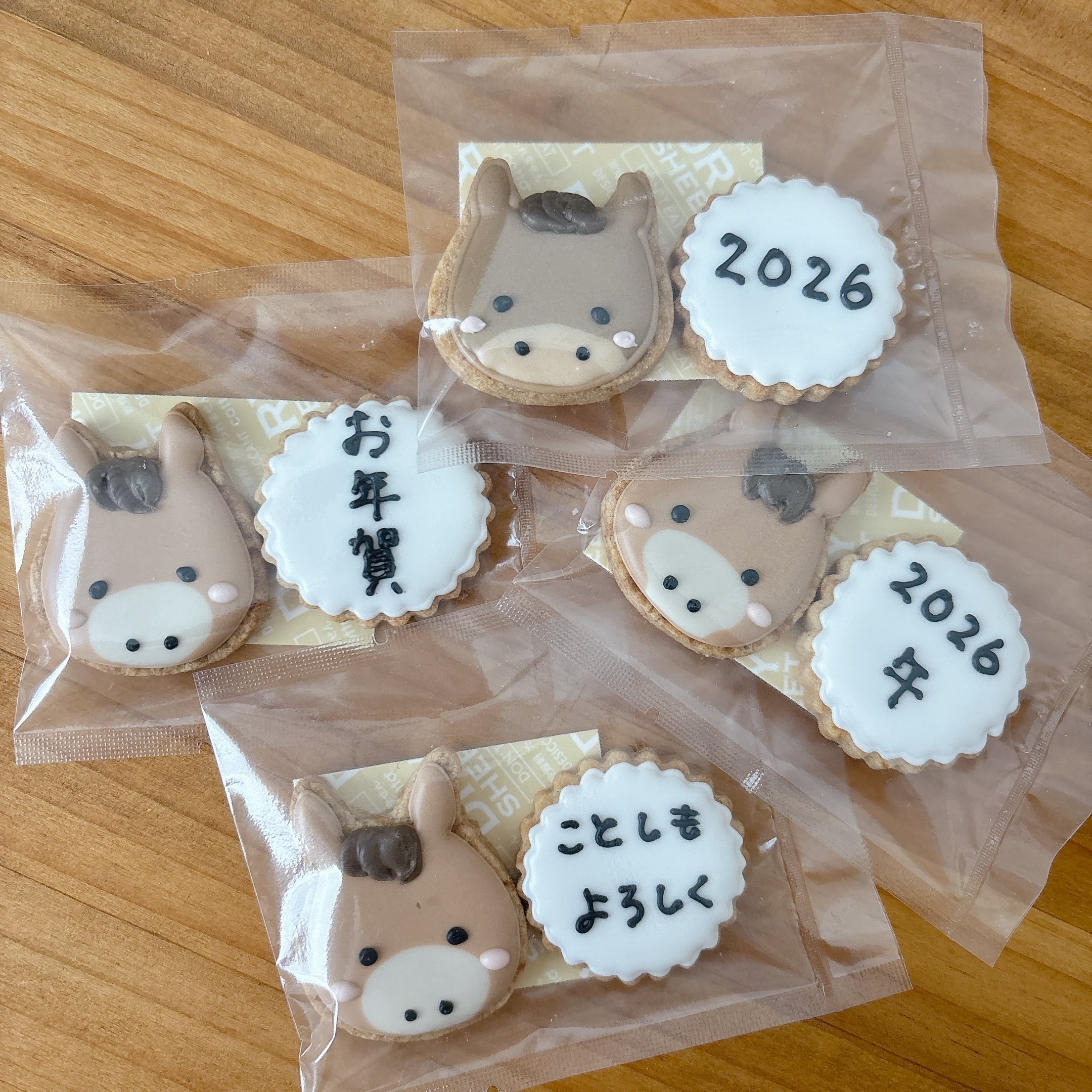 2026年の干支、ウマのアイシングクッキーと、しめ縄のアイシングクッキーが入った詰め合わせです。